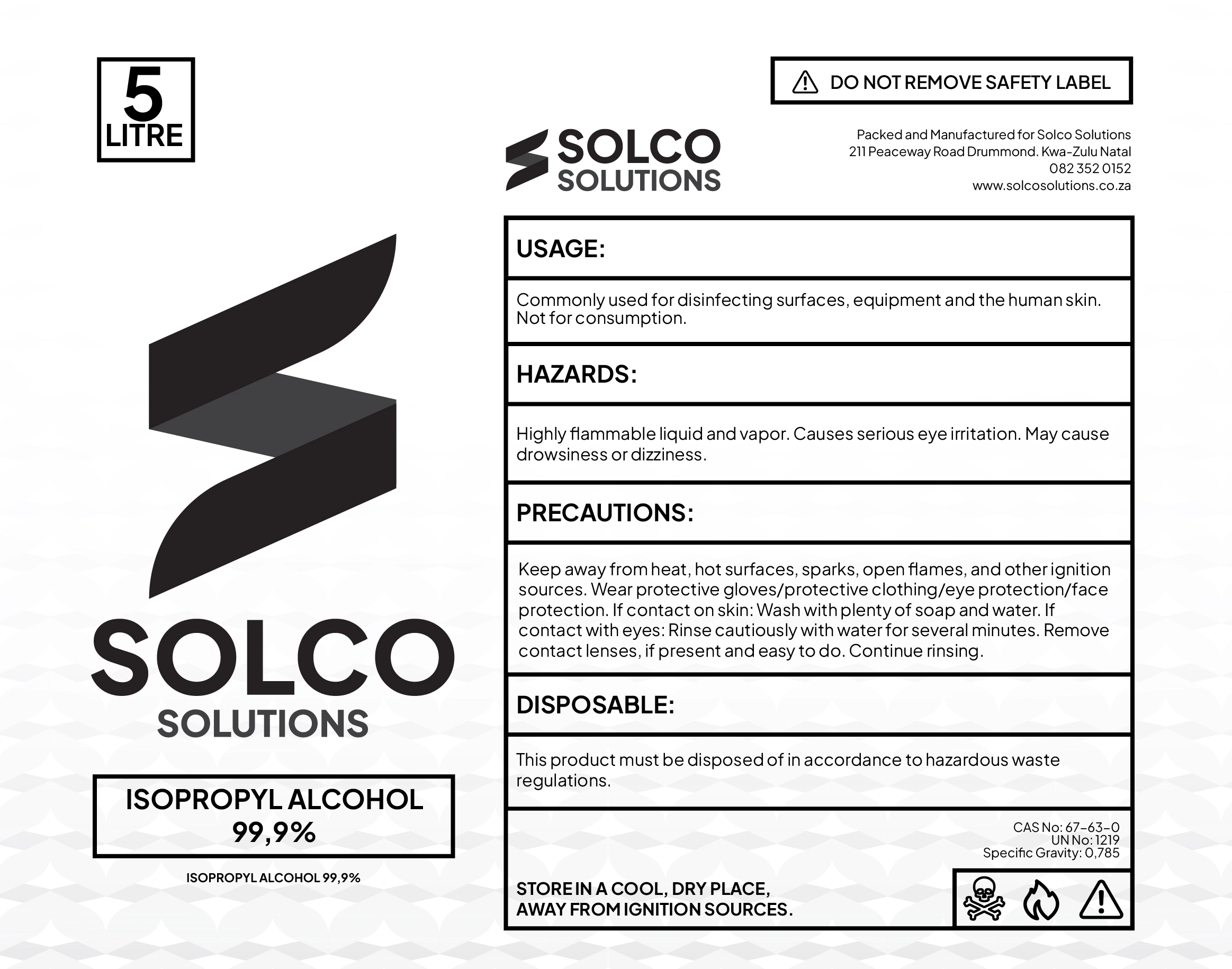 Product regularity codes and information: CAS No: 67-63-0 UN No: 1219 Specific Gravity: 0,785