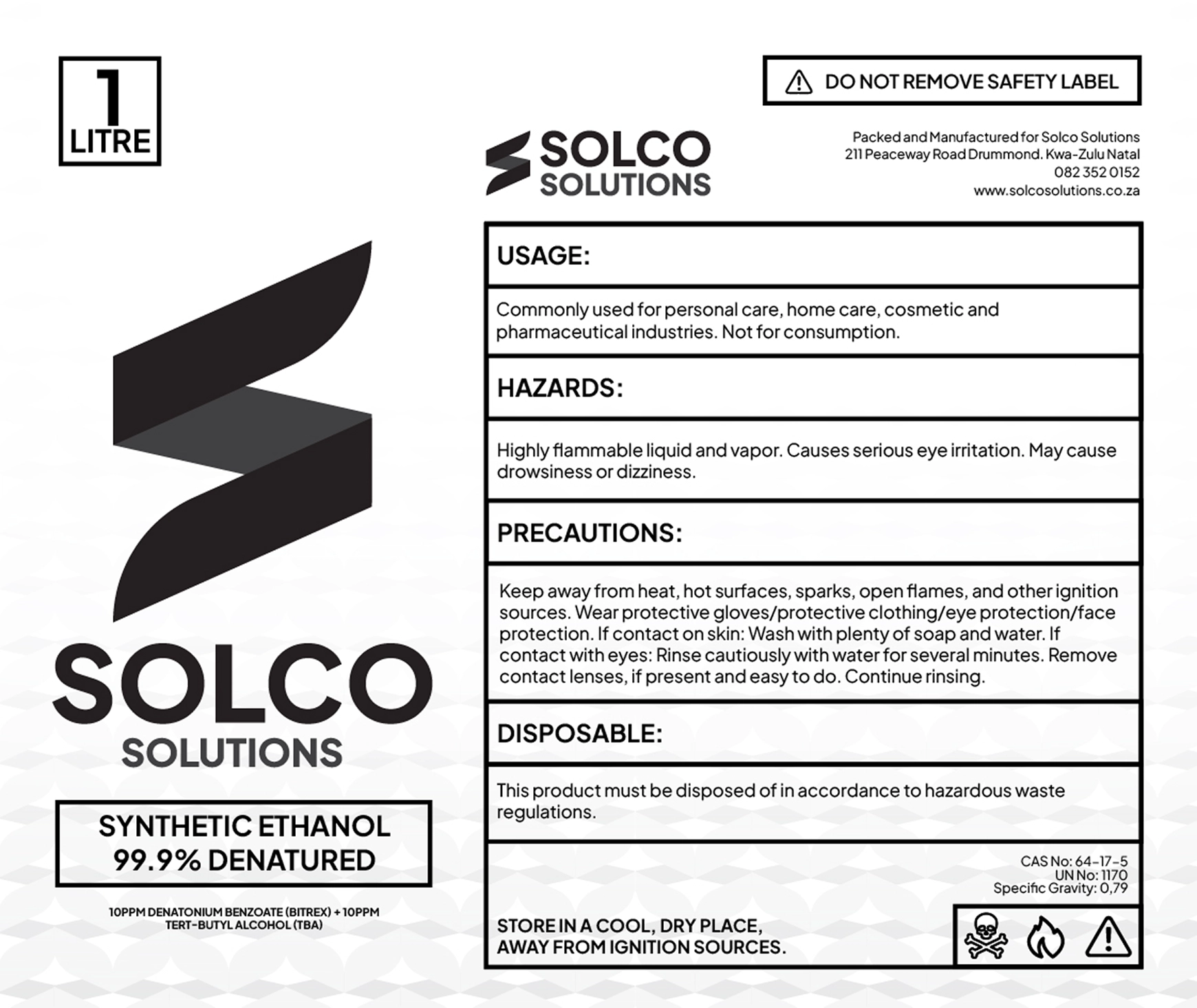 Product regularity codes and information: CAS No: 64-17-5 UN No: 1170 Specific Gravity: 0,79